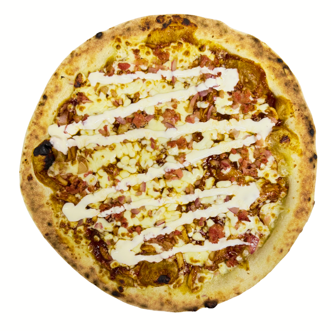 Shredded BBQ Chicken, Hickory Smoke BBQ Sauce, Bacon, Red Onion & Buttermilk Ranch Dressing