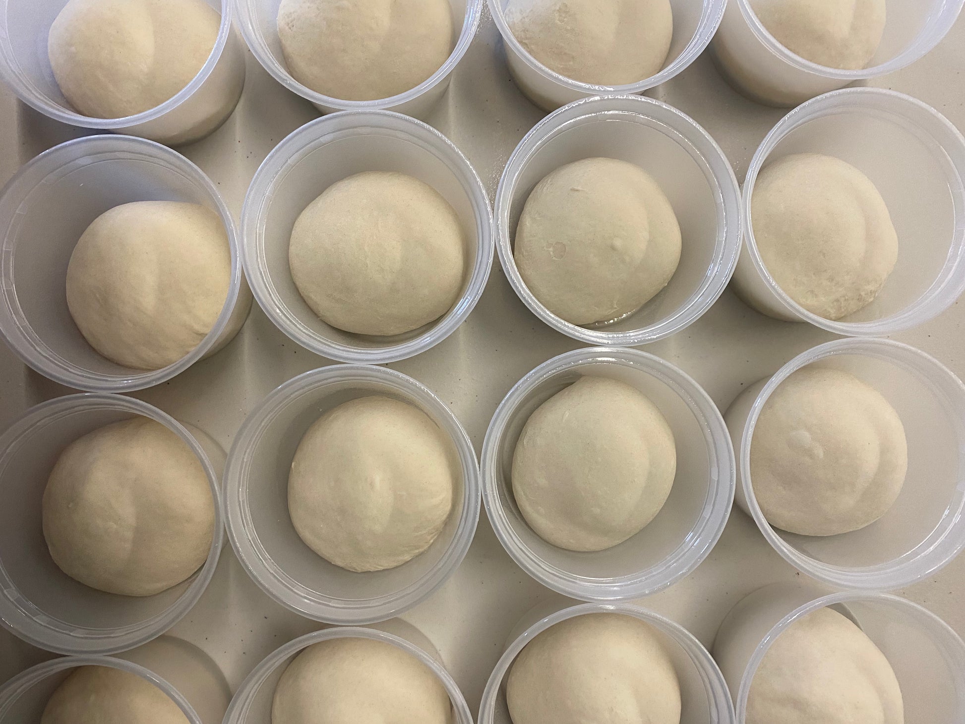 Store in the fridge and take out to bring to room temp 2-3 hours before pizza time.